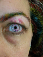 Jocelyn that I tie dye my eyelashes. Well, that just got the creative juices flowing (no, not the squeeze bottles of dye...though I have been doing that again too) and I took a couple pictures and sent them off to my photoshopping wizard pal,